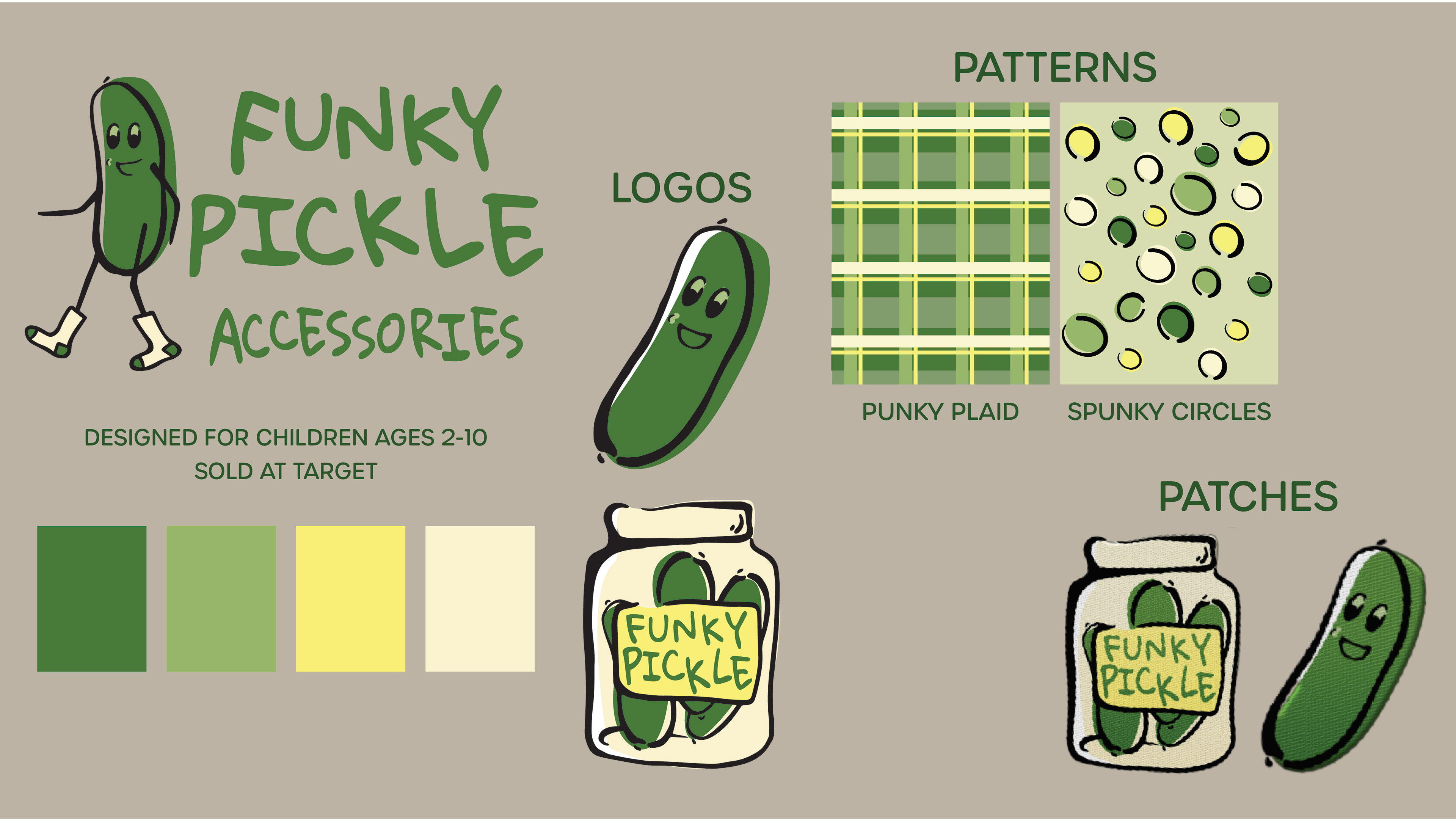 Accessory Line of children's brand incorporating custom patterns, packaging design, and product mockups. Created with Adobe photoshop and Illustrator.